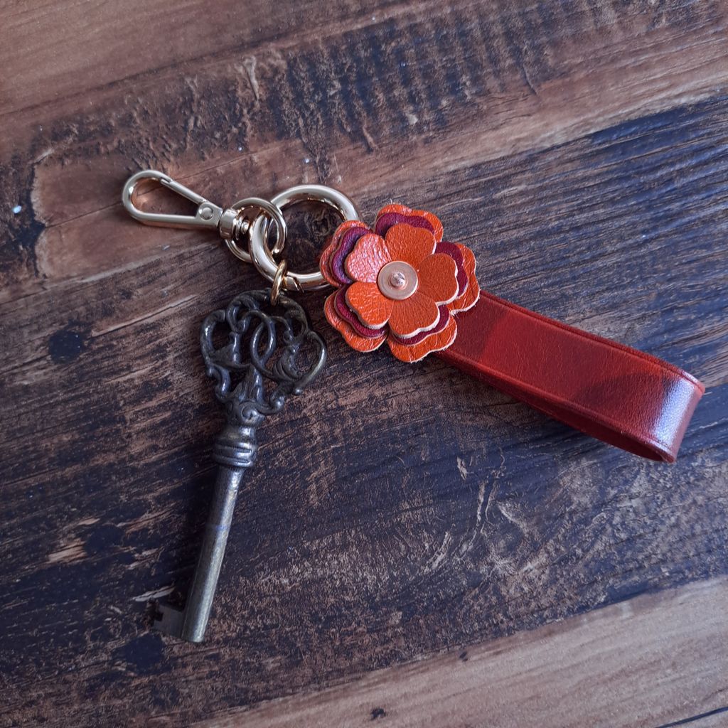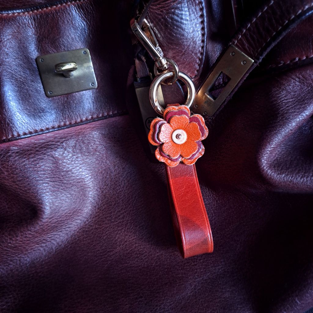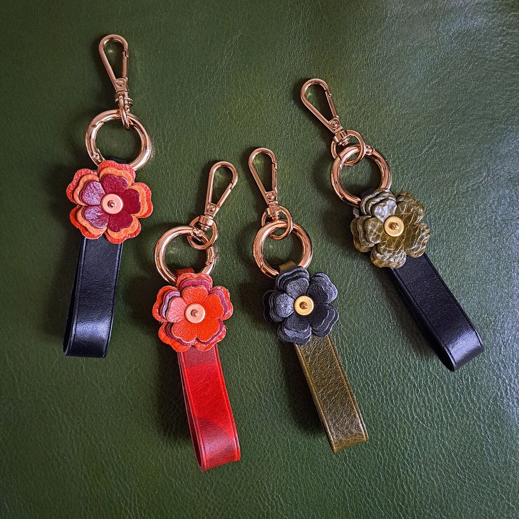 精選多種進口植鞣皮革製成的花朵,搭配多種用途的金屬圈釦,可以當作鑰匙圈,也可當成吊飾掛在皮包衣物上,是自用送禮的好選擇,享受於有花的時間裡