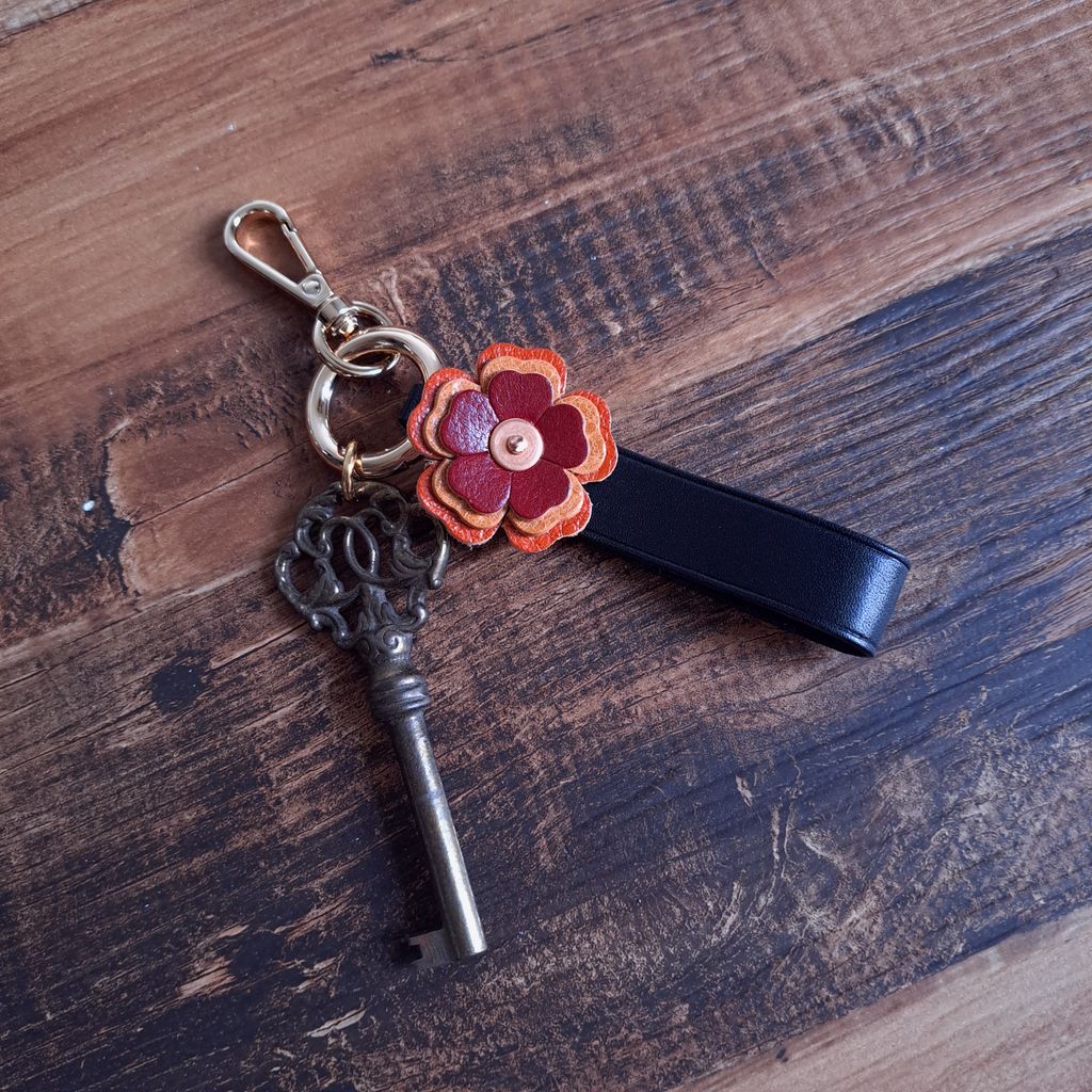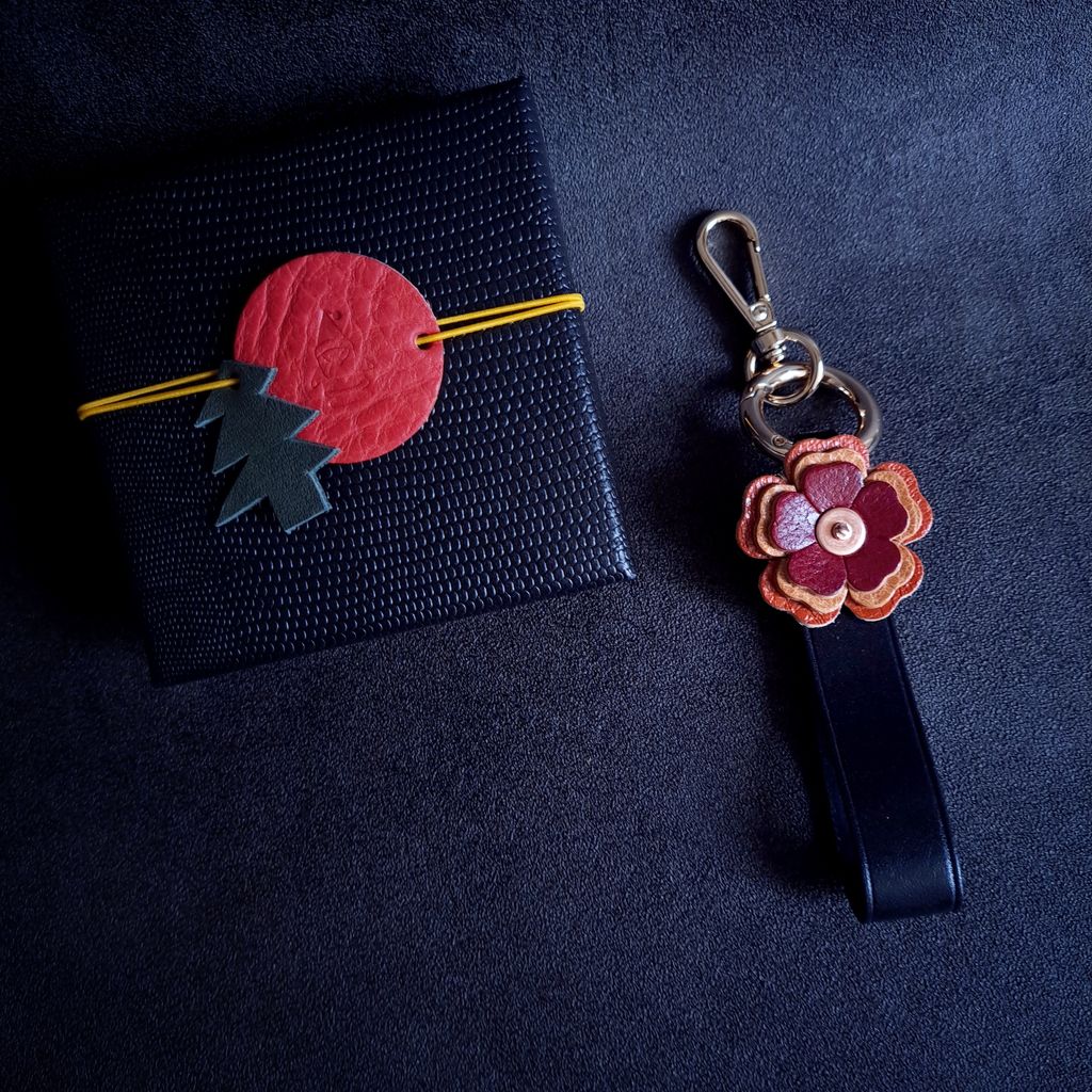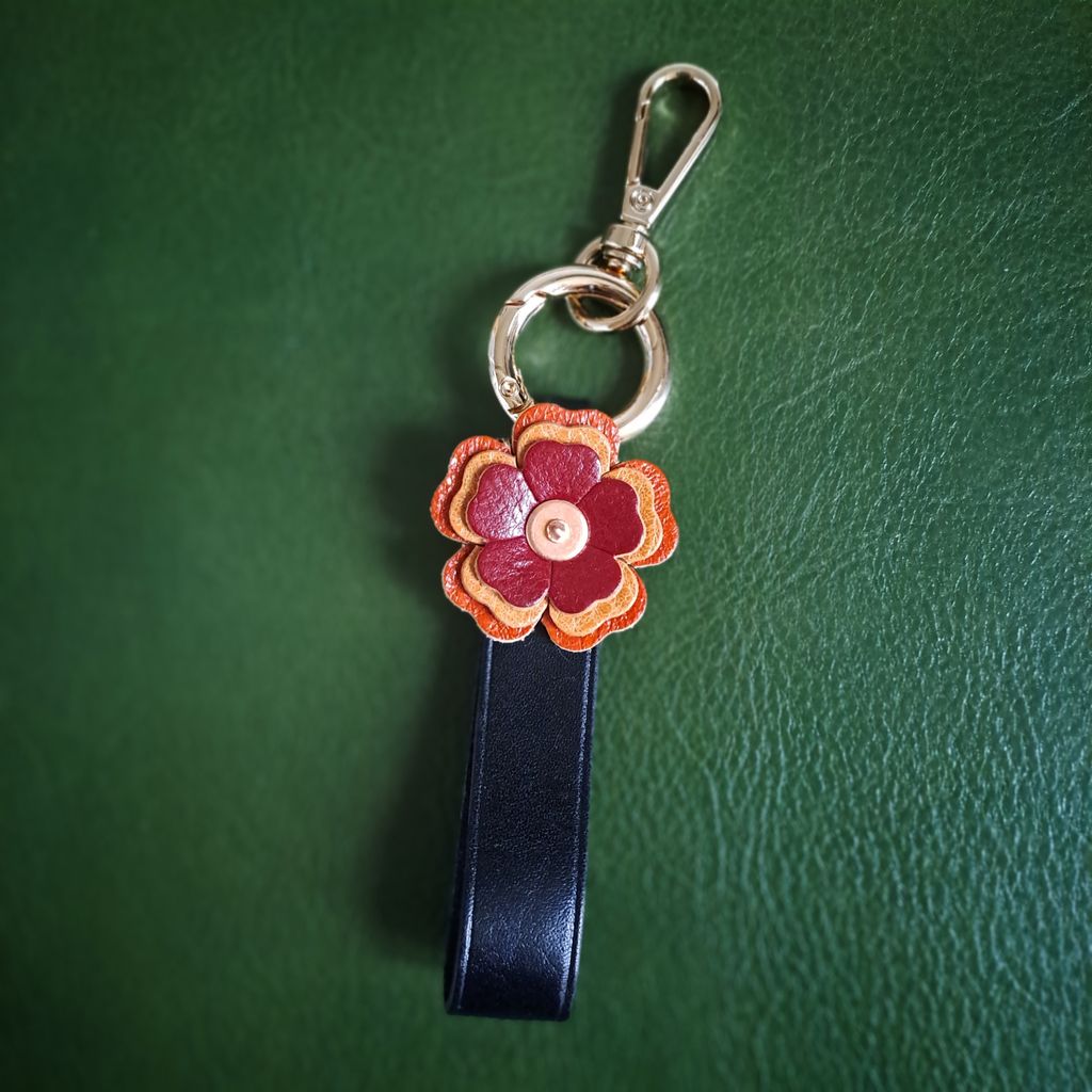 精選多種進口植鞣皮革製成的花朵,搭配多種用途的金屬圈釦,可以當作鑰匙圈,也可當成吊飾掛在皮包衣物上,是自用送禮的好選擇,享受於有花的時間裡